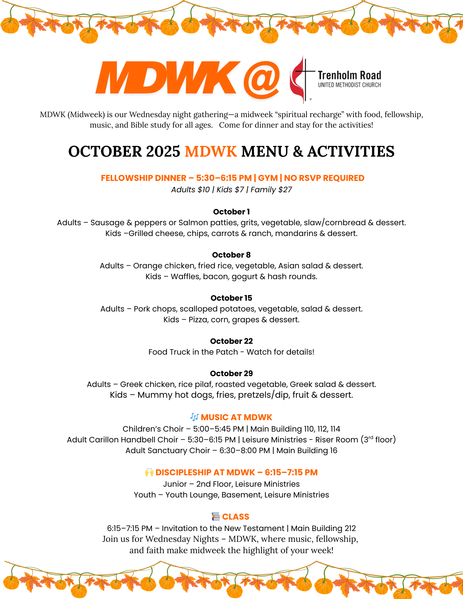 Wednesday nights at Trenholm Road UMC are more than just another midweek activity—they’re a chance for the whole family to gather, connect, and grow together. Whether you’re ringing handbells, enjoying a hearty meal, singing with friends, or digging deeper into discipleship, there’s a place for you here.