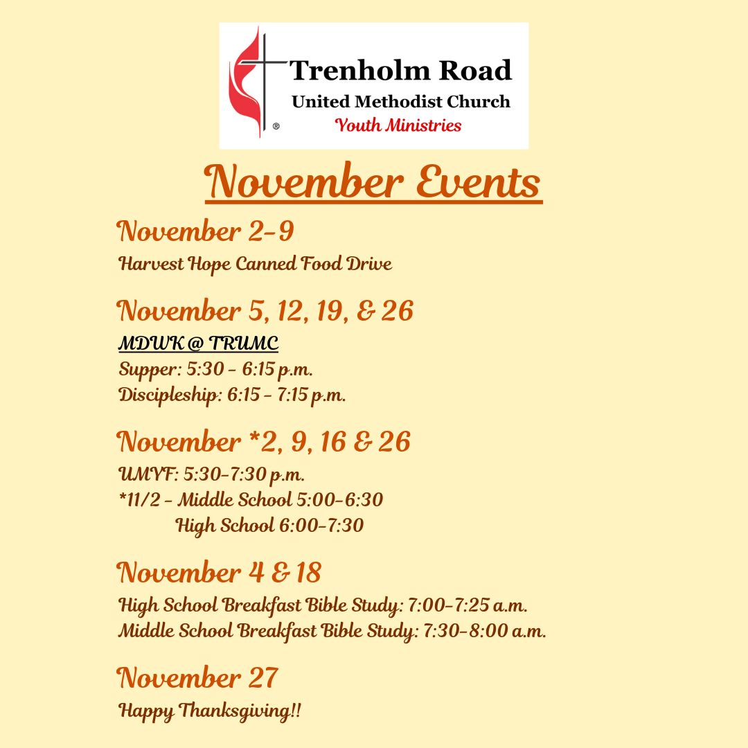 Contact Kevin Smith, Director of Student Ministries - youth@trumc.org