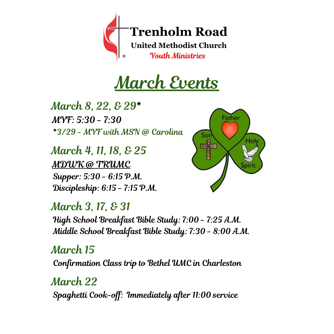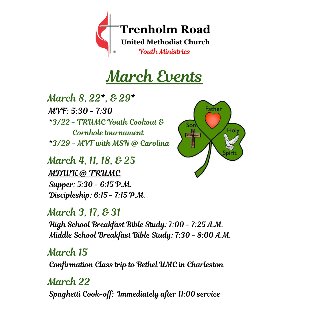 Contact Kevin Smith, Director of Student Ministries - youth@trumc.org